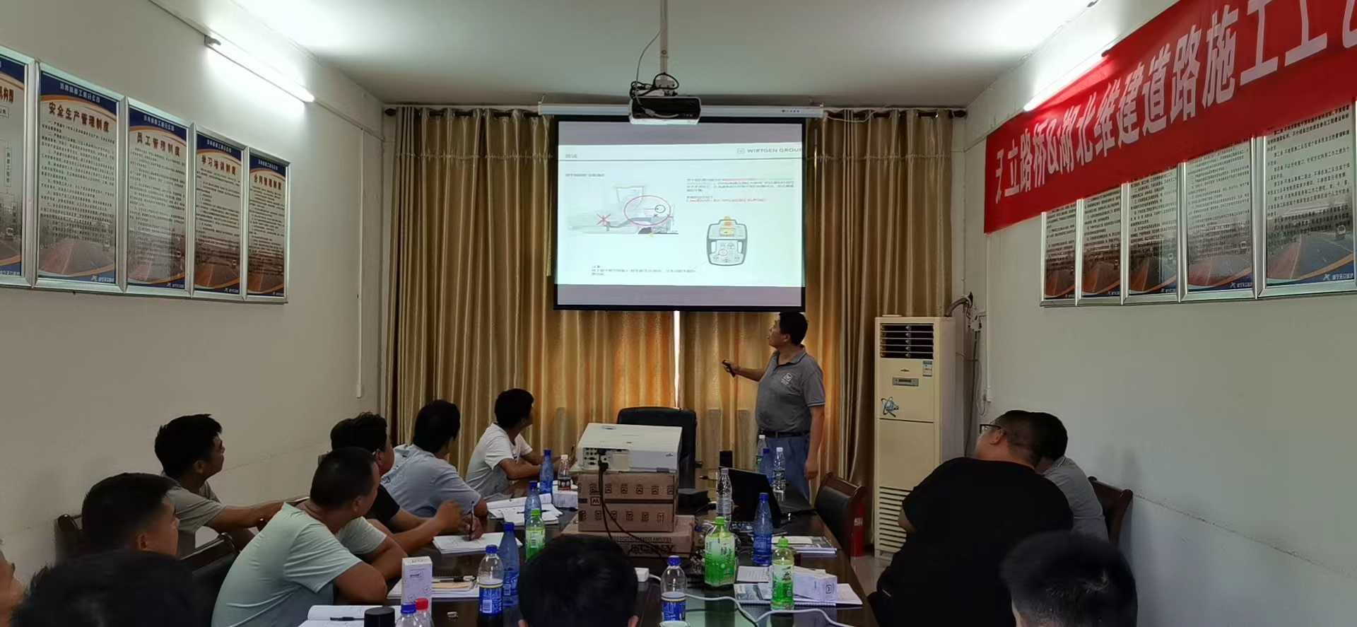 培训中,湖北维建工程机械有限公司专家从沥青配合比、拌合站、现场施工控制、基层新规范控制等方面进行了讲解,并对现场拌合、摊铺、压实、检测方法等关键环节进行详细的阐述。大到摊铺机的运行走向,小到对各种矿料的施工配合比,以及沥青路面的一些病害,如路面的裂痕、沉陷、冻胀等,系统的讲解了大环节里平时比较容易忽视的小细节,与参会人员进行技术交流的同时还在现场进行设备操作实践。