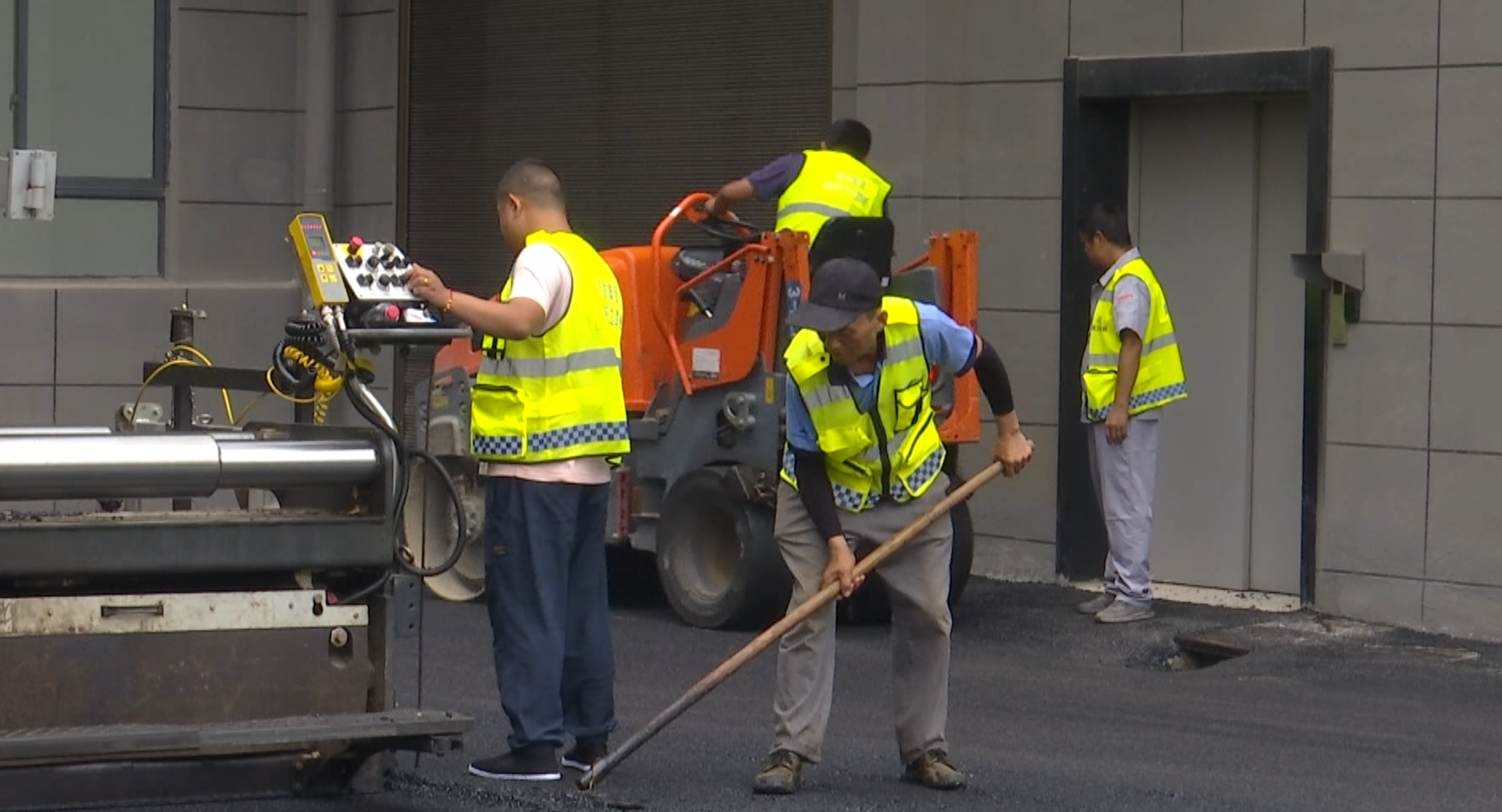 近日,在咸宁市华欣制衣有限公司园区内,摊铺机正有序作业,咸安区经发集团天立路桥公司的工人们正忙碌在施工一线,他们以专业和汗水践行着党支部“情系百家”的庄严承诺。